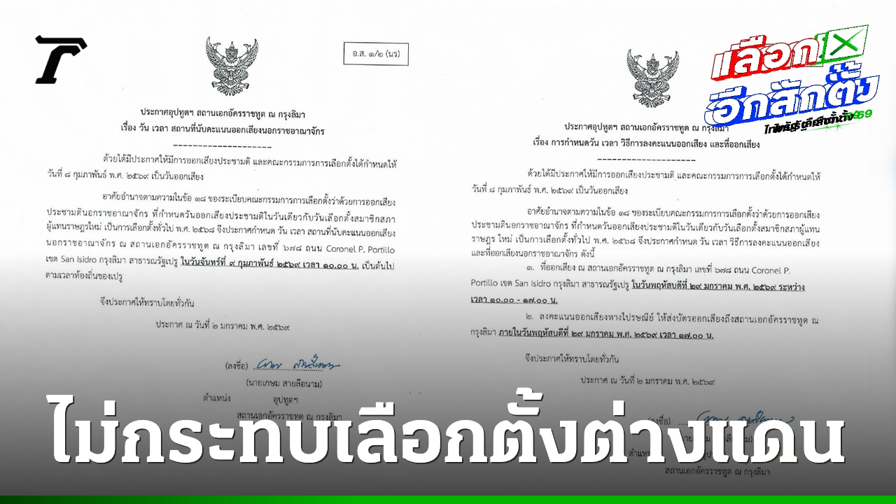 民主党发言人呼吁泰国人民通过注册“提前选举”来决定国家未来,最后注册期限为今天午夜,即2569年1月5日。2569年1月5日,民主党(ปชป.)发言人蓬萨甲·宽蒙先生表示,在今天午夜前,他鼓励所有因事务繁忙或于2月8日无法投票的选民尽快注册“提前选举”,选举委员会(กกต.)已将今日定为最后的注册日期。针对在非居住地区和非王国境内进行投票的注册,选举委员会从…