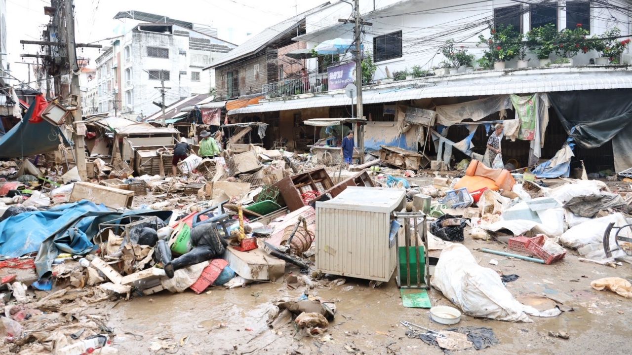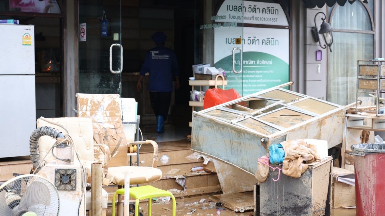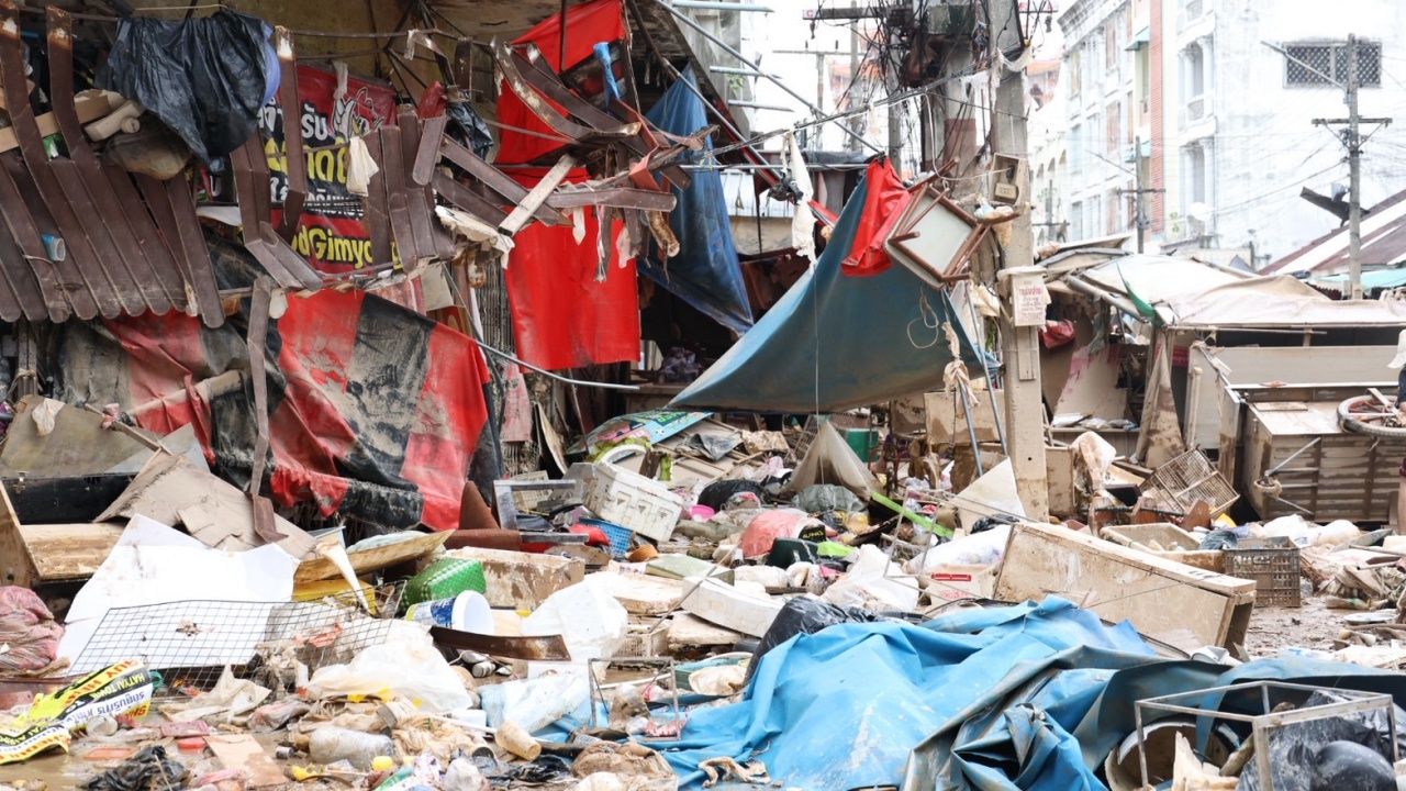 展示了“合艾洪水”导致的金永市场损失的重要图像,这里是宋卡省的重要经济区之一。多个地区的水位已降下,但商家和公众呼吁提供支持设备及紧急恢复措施。