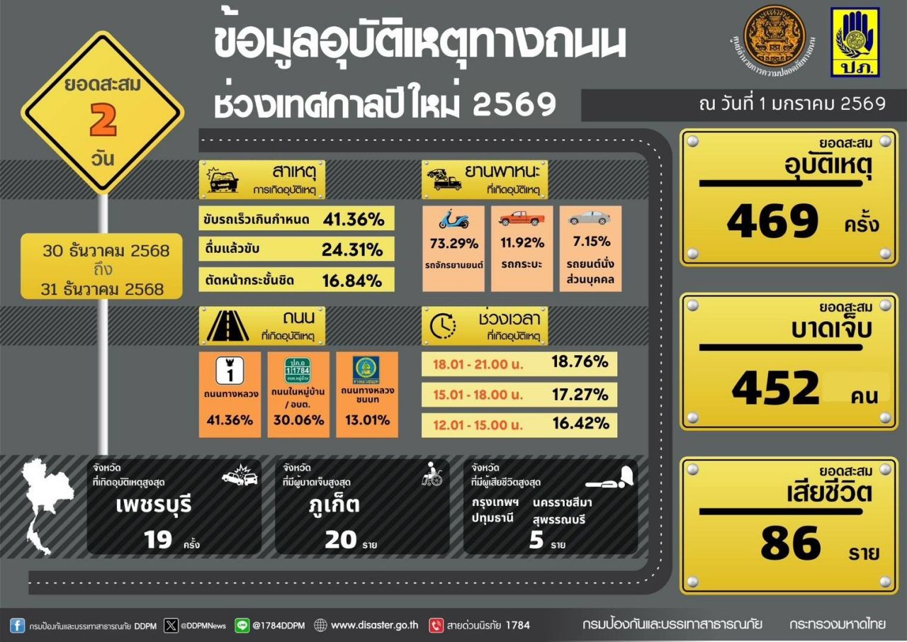 事故最多的省份是碧武里,受伤人数最多的是芭堤雅和素叻他尼,而死亡人数最多的是那空拉差是玛和素攀武里。