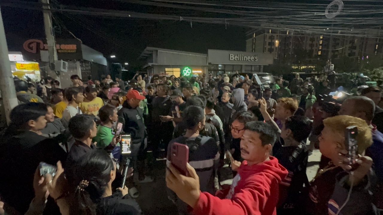 消息称,在1月12日19:30,超过百名骑手来到一家餐厅,此前有缅甸工人在此袭击了一名骑手。众多骑手约定到此支持受伤的泰国骑手。