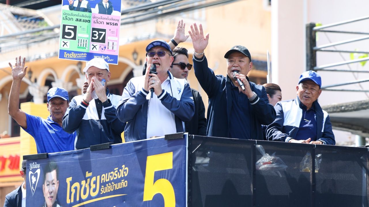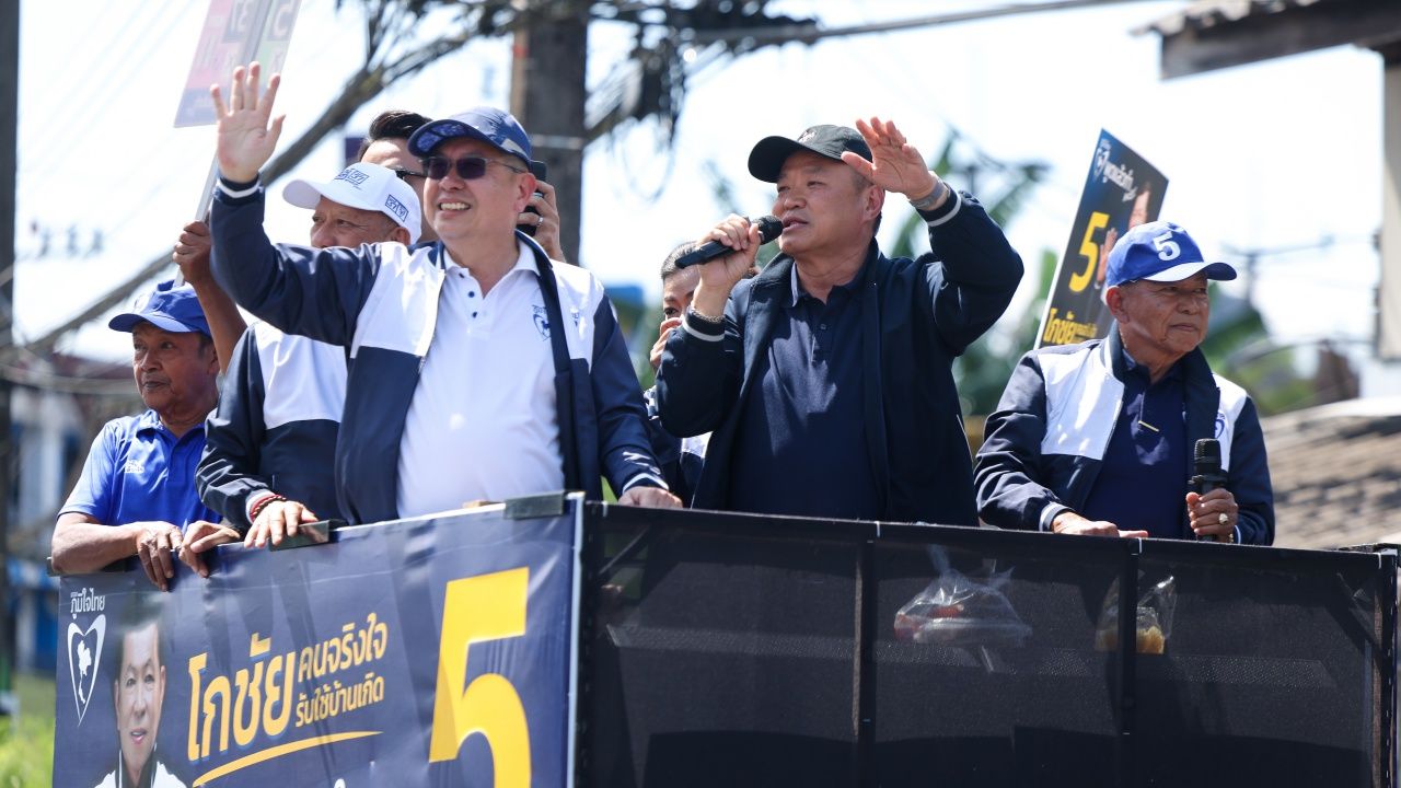 2026年1月14日,阿努廷·查维拉空,泰国自豪党党领,带领党内骨干前往攀牙省为攀牙一区的候选人阿塔彭·特拉西拉票。最初在攀牙市的加央金公园参拜龙普图瓦,以求吉祥。