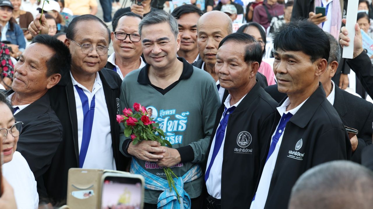 "阿披实"在舞台上宣称:伊桑脱贫,民主党必须成为泰国的“安全选择”,强调在Sri Mueang田野中树立100%诚实的旗帜