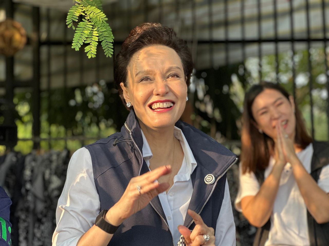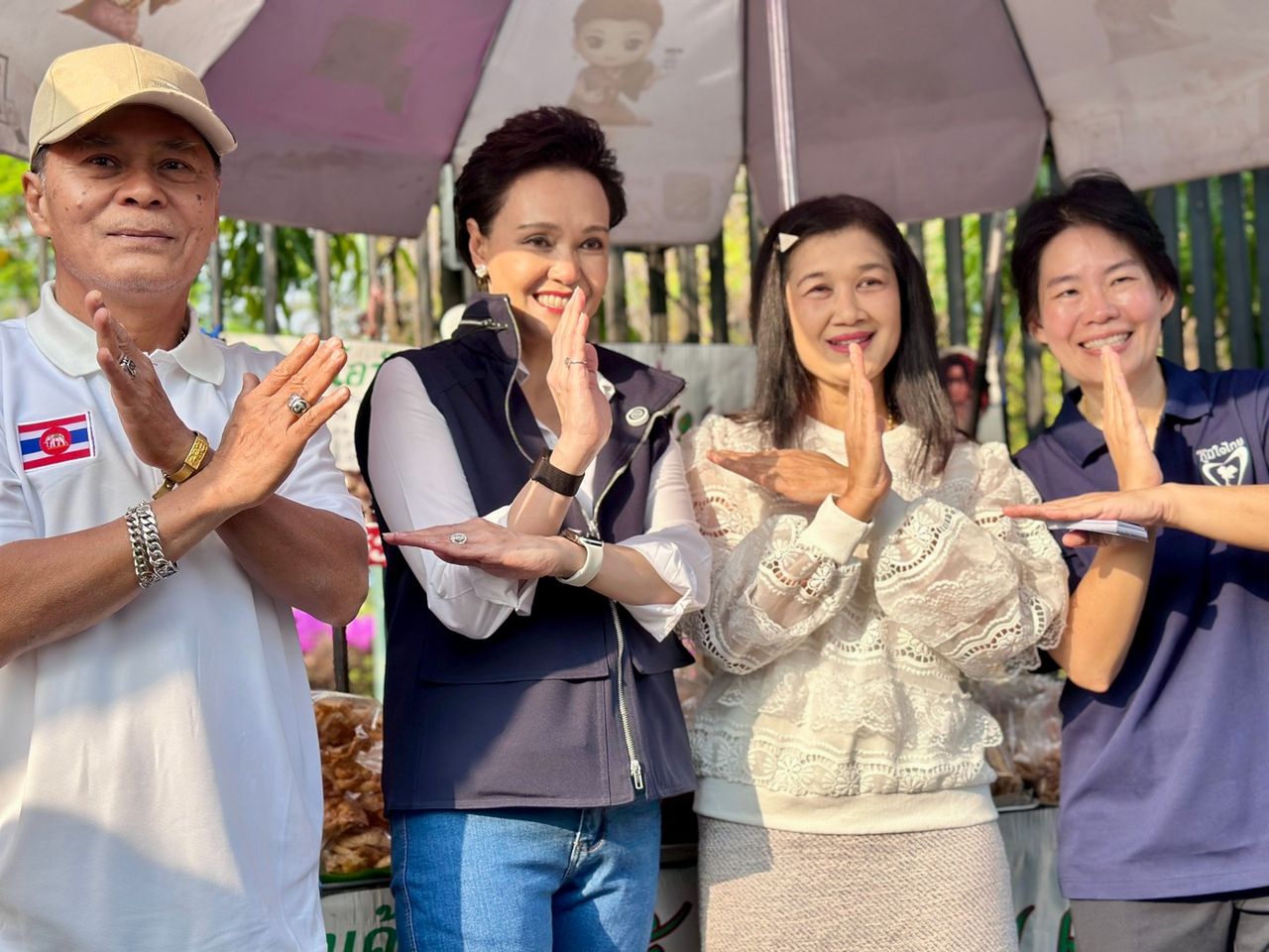 商贩称赞素帕吉女士能干且像明星一样漂亮。素帕吉女士感谢民众,并指出自豪泰党有照顾老年人的政策。还有民众表示很高兴提提帕女士加入了心仪的政党,并告诉素帕吉女士喜欢实干的人。素帕吉女士回应说,他们每天都在工作。