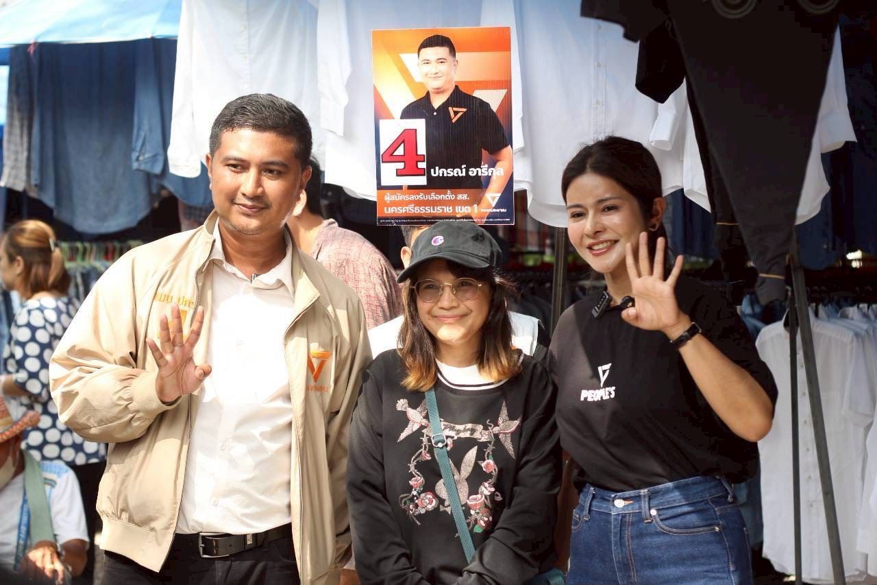 2029年1月17日,人民党名单国会议员候选人帕克蒙·努纳南女士,前往那空是贪玛叻府市区,协助为帕功·阿里功先生(昵称“曼”)——人民党那空是贪玛叻第1选区4号候选人——进行竞选拉票,受到当地民众的热烈关注。